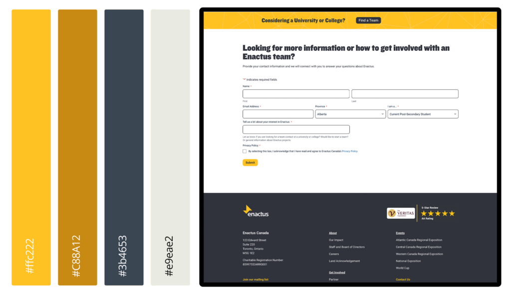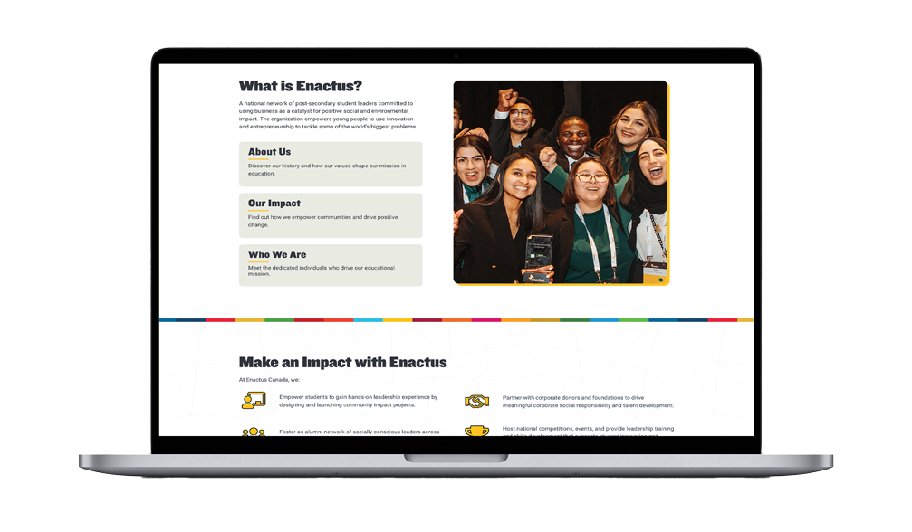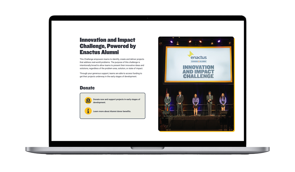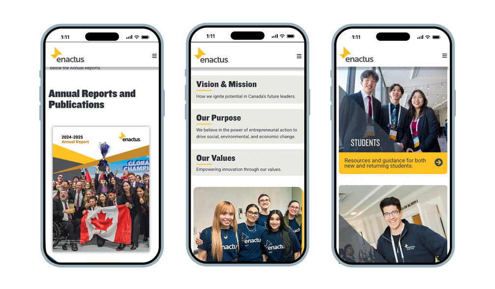 The redesigned Enactus Canada website delivers a clear, accessible, and scalable platform that supports a national audience with diverse needs. By aligning strategy, structure, and technology, the new site strengthens engagement, improves usability, and provides a foundation for continued growth.