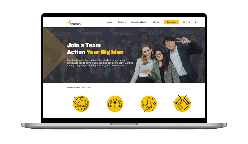The project focused on creating a scalable, bilingual digital experience that could evolve alongside Enactus Canada’s programs, partnerships, and national initiatives.