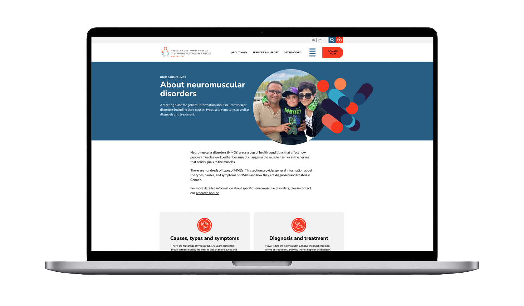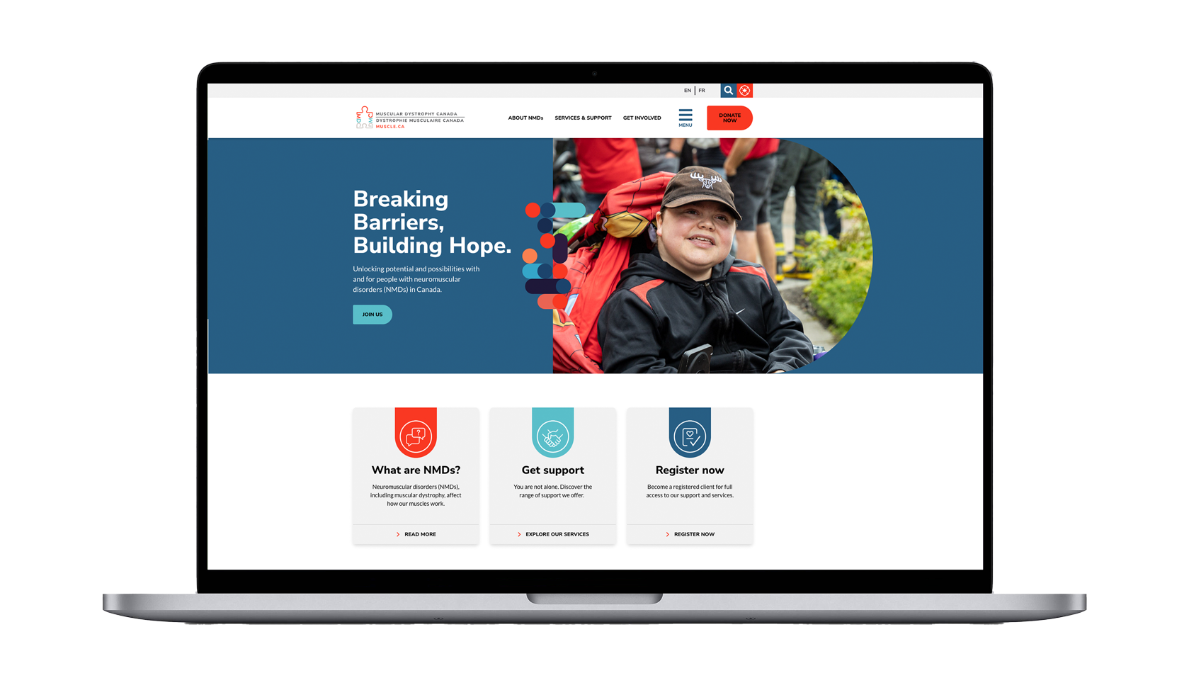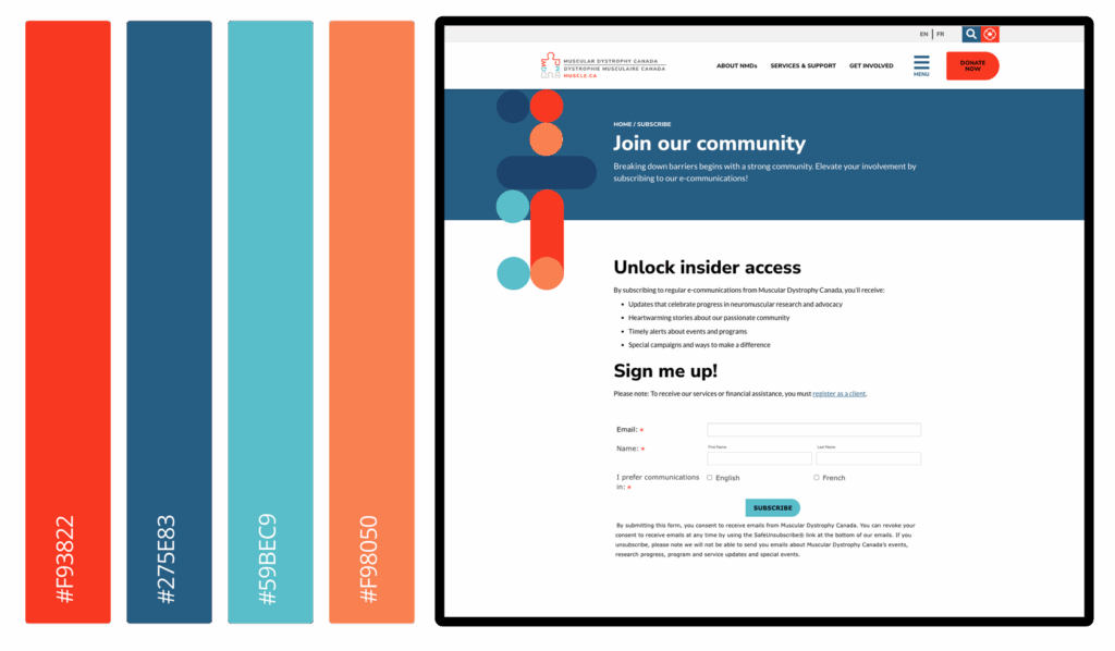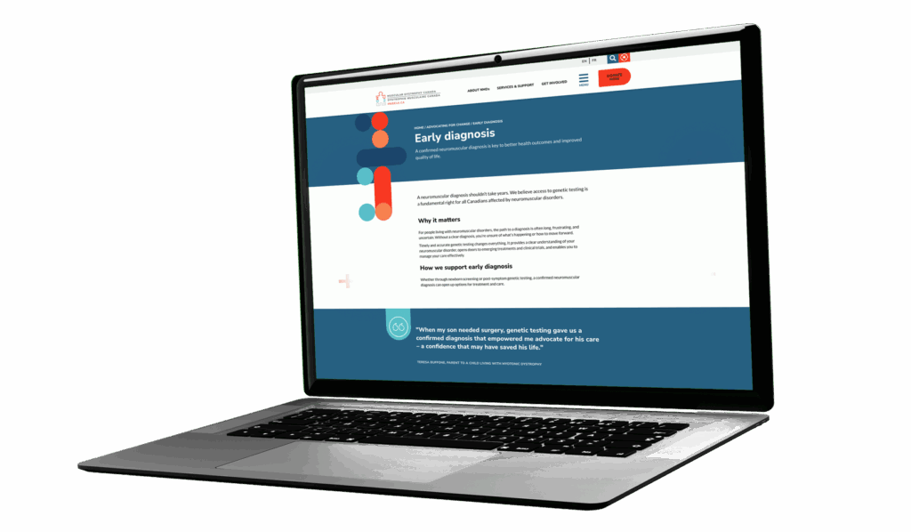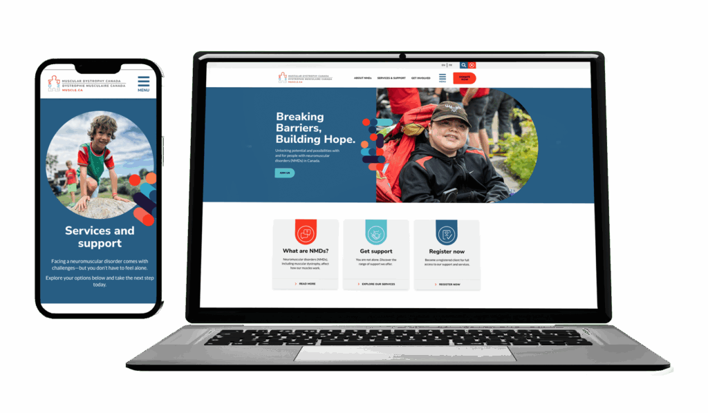 Muscular Dystrophy Canada (MDC) required a full website redevelopment to modernize their digital presence and better serve their national audience. Their existing site lacked accessibility compliance, intuitive navigation, and bilingual content management – creating barriers for users and inefficiencies for internal teams.
