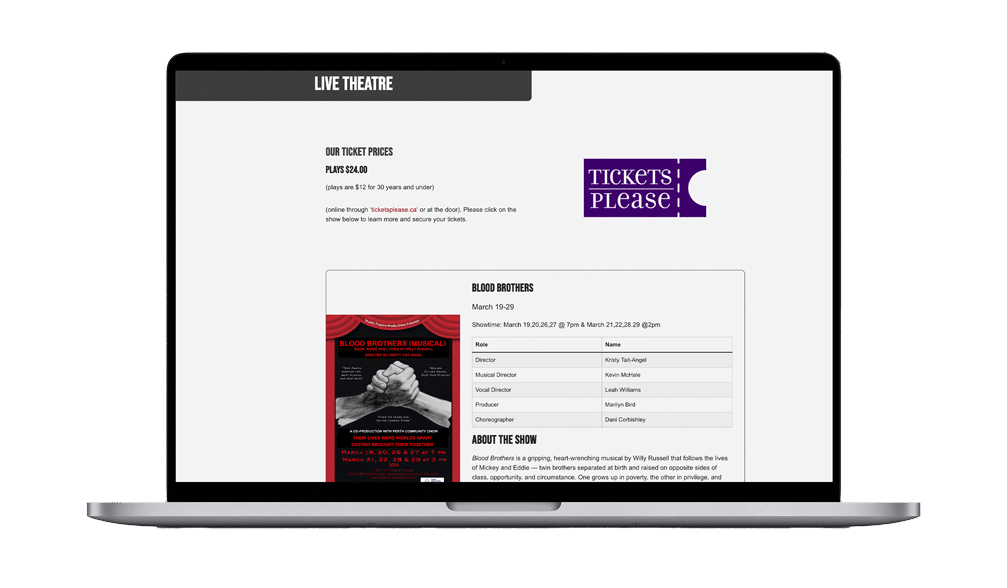 Working closely with the Studio Theatre Perth team, we prioritized practical improvements that would deliver immediate value while creating a flexible foundation for future growth. Each decision was guided by the theatre’s operational needs, audience diversity, and the importance of maintaining an easy-to-manage platform.